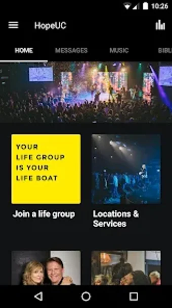 แอปพลิเคชัน HopeUC เป็นโปรแกรมไลฟ์สไตล์ฟรีที่ออกแบบมาสำหรับผู้ใช้ Android โดยถูกพัฒนาโดย Subsplash Inc และต้องใช้ WiFi หรือข้อมูลมือถือเพื่อทำงานอย่างถูกต้อง แอปพลิเคชันนี้ให้การเข้าถึงเนื้อหาที่หลากหลาย เช่น คำเทศน์ พ็อดแคสต์ และวิดีโอ ซึ่งสามารถแชร์กับเพื่อนๆ ผ่านทางอีเมล ทวิตเตอร์ หรือเฟสบุ๊ค